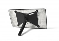 The PERRIN Front License Plate Relocate is made of thick plate aluminum which is folded in a press break to add rigidity and eliminate any flex. It will not bend or flex under normal conditions like competitive parts.